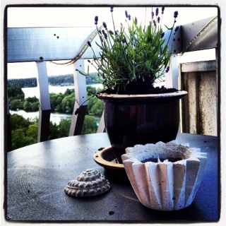 Blommorna bli planterade på balkongen och jag sätter mig en stund och njuter i snålkylan på 6:e våningen, önskar mig inglasning men inser att nytt tak på Gotland är bättre så jag går in och tar ut kakan som ser gudomlig ut.
